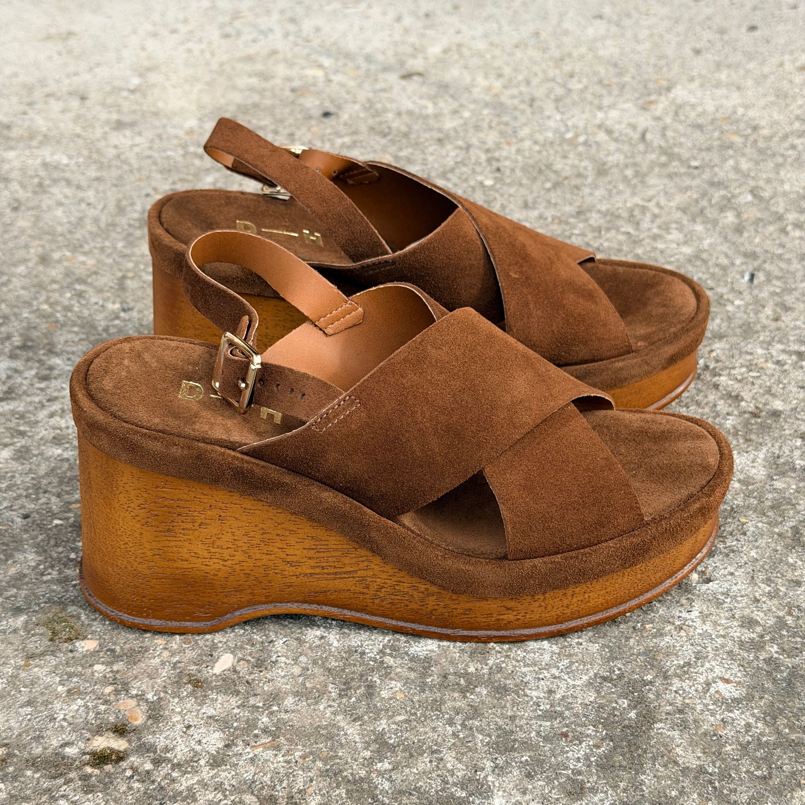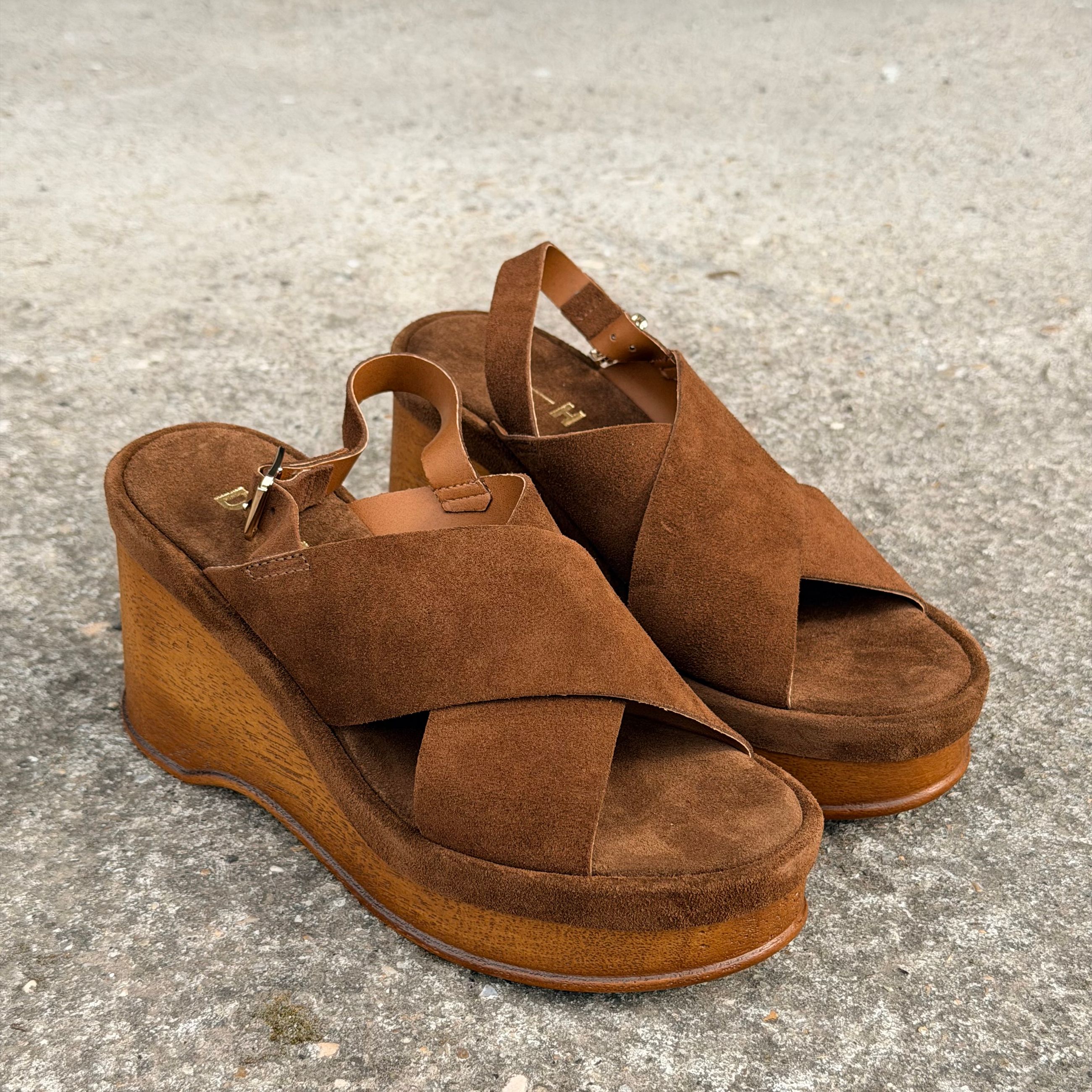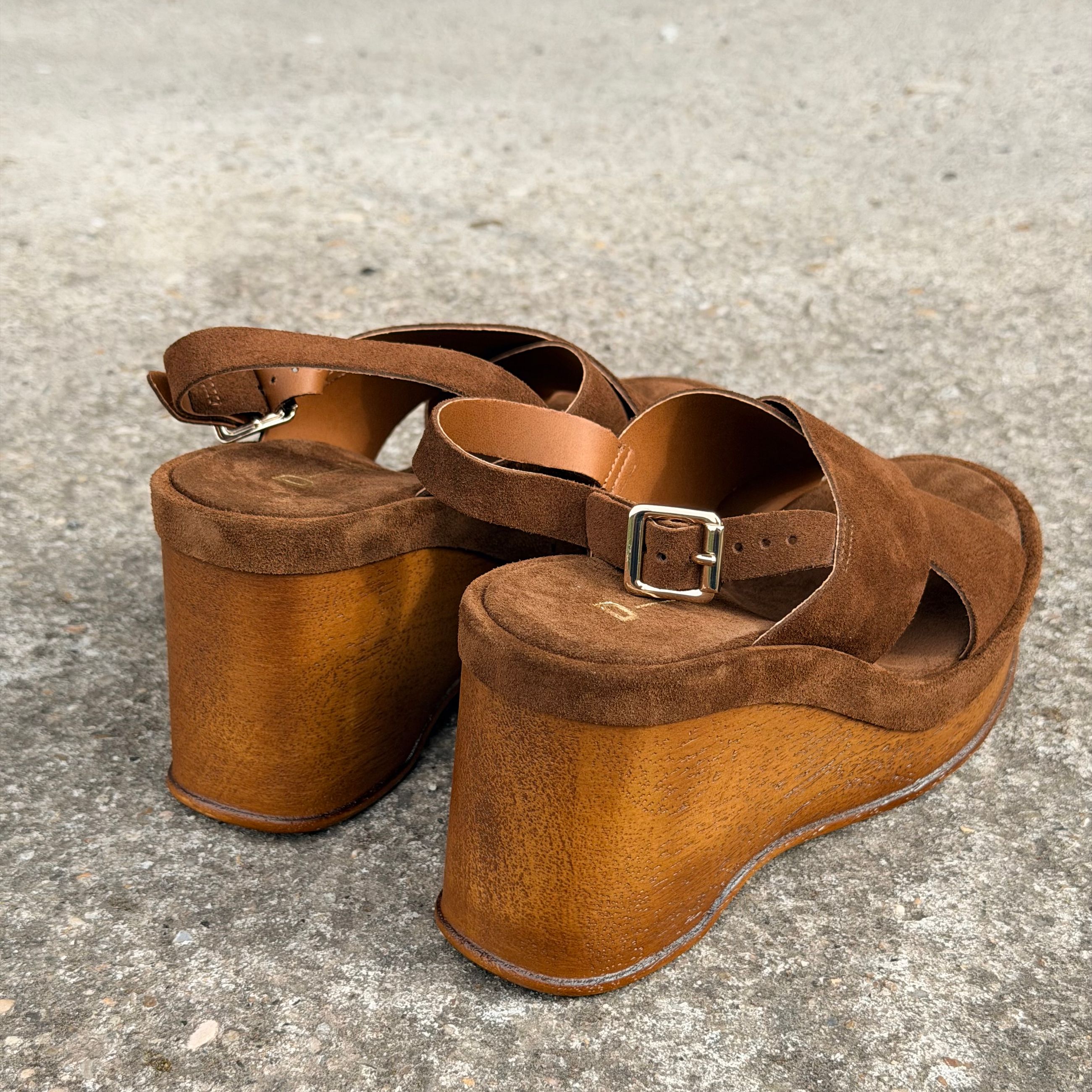 Sandalo in camoscio con zeppa di cm 9